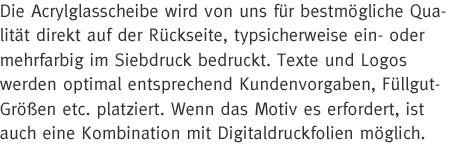 Hinterglas-Beschriftung im Digitaldruck und Siebdruck (agilis)